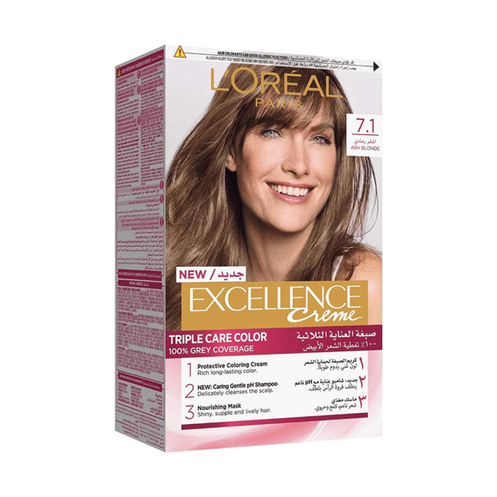 صبغة شعر اكسيلنس كريم من لوريال باريس - 7.1 أشقر رمادي