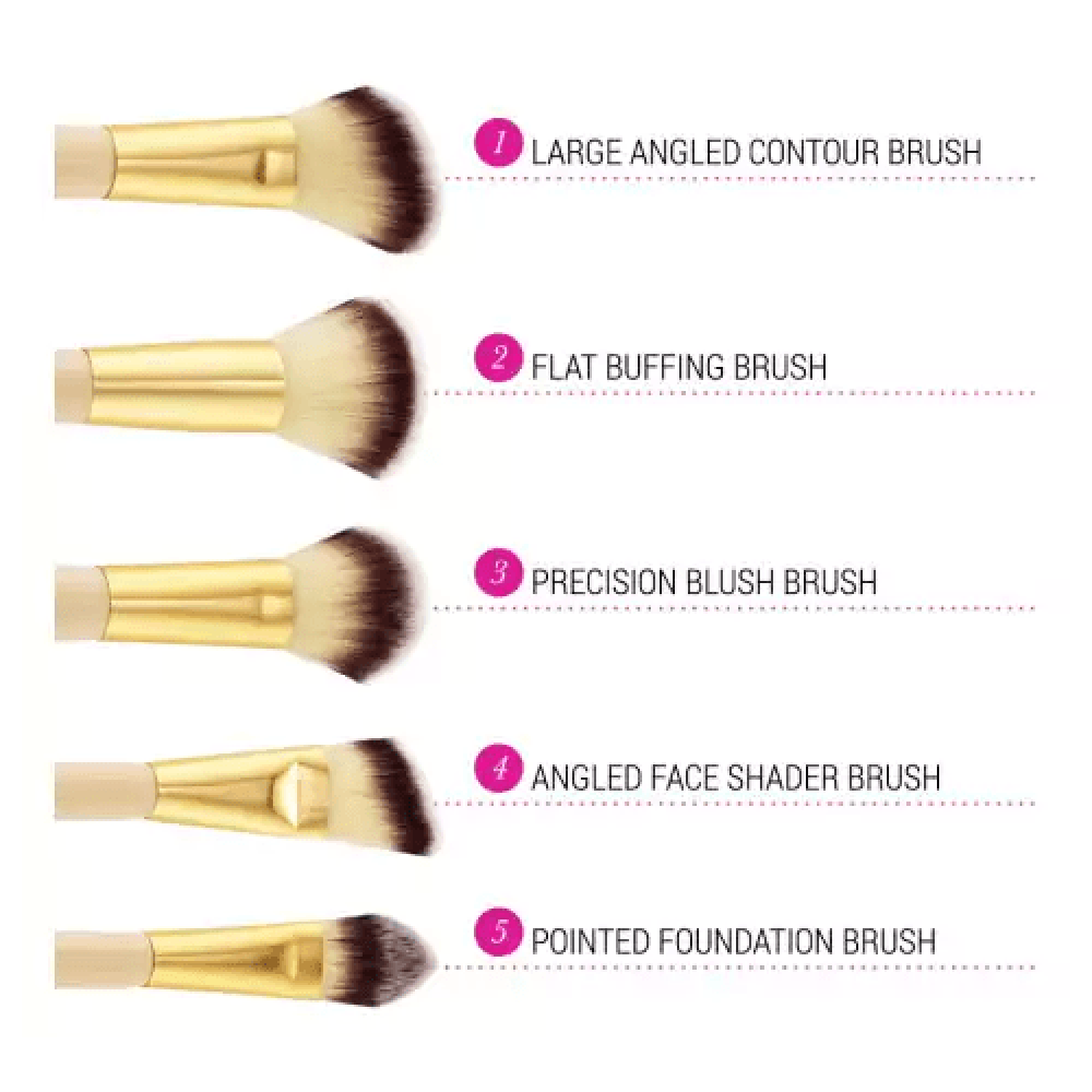 يتضمن طقم بي إتش مجموعة متنوعة من الفرش لتطبيق مكياج الوجه والعين، مثل فرش الأساس، والبودرة، والبلاشر، وظلال العيون، وفرش الدمج المسطحة.